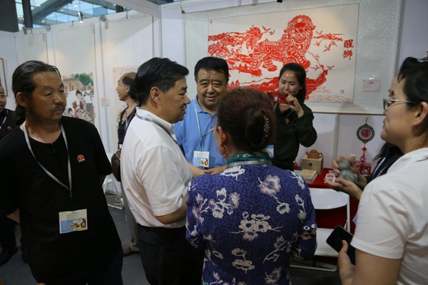 榆林市文化產(chǎn)業(yè)聯(lián)合會會長陳亮與參展代表交流