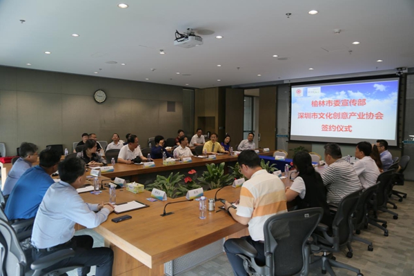 展會合影 榆林市文化產(chǎn)業(yè)聯(lián)合會在深圳參觀考察 5月18日,榆林市委宣傳部副部長劉斌帶領(lǐng)聯(lián)合會一行考察深圳崇德動漫股份有限公司等并簽署戰(zhàn)略合作協(xié)議。此次簽約儀式,由榆林市委宣傳部副部長劉斌指導(dǎo),榆林市文化產(chǎn)業(yè)聯(lián)合會會長陳亮于2019年3月著手推進(jìn),目的在于加強(qiáng)榆深兩地合作,促進(jìn)榆林的文化產(chǎn)業(yè)更上一層樓。 參加此次簽約儀式的有:榆林市委宣傳部副部長劉斌,榆林市文化旅游局副局長楊樹發(fā),榆林市12個市縣區(qū)宣傳部負(fù)責(zé)人,榆林市文化產(chǎn)業(yè)聯(lián)合會會長陳亮,副會長張?jiān)鰬,副秘書長張鳳飛、薛雨杭、曹強(qiáng),深圳市文聯(lián)原專職副主席、顧煥金,深圳市福田區(qū)政協(xié)副主席朱東波,深圳福田區(qū)作家協(xié)會主席秦錦屏,深圳蓮花山文學(xué)院副院長王振文,深圳福田區(qū)作家協(xié)會副主席蔡秀文,深圳福田作家協(xié)會副秘書長王松祿,深圳市福田區(qū)文化創(chuàng)意產(chǎn)業(yè)協(xié)會秘書長周勇高,深圳崇德動漫股份有限公司趙先得,深圳市字在文化傳播有限公司城市聲音博物館劉亞,深圳市達(dá)達(dá)包裝設(shè)計(jì)有限公司李靜,深圳市機(jī)大師科技有限公司歐曉洪,榆林市文化產(chǎn)業(yè)聯(lián)合會深圳文博會參會人員等。