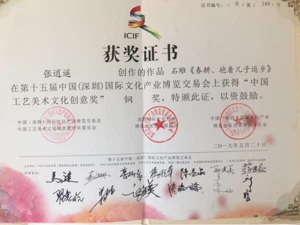 張逍遙--石雕《春耕、抱著兒子返鄉(xiāng)》