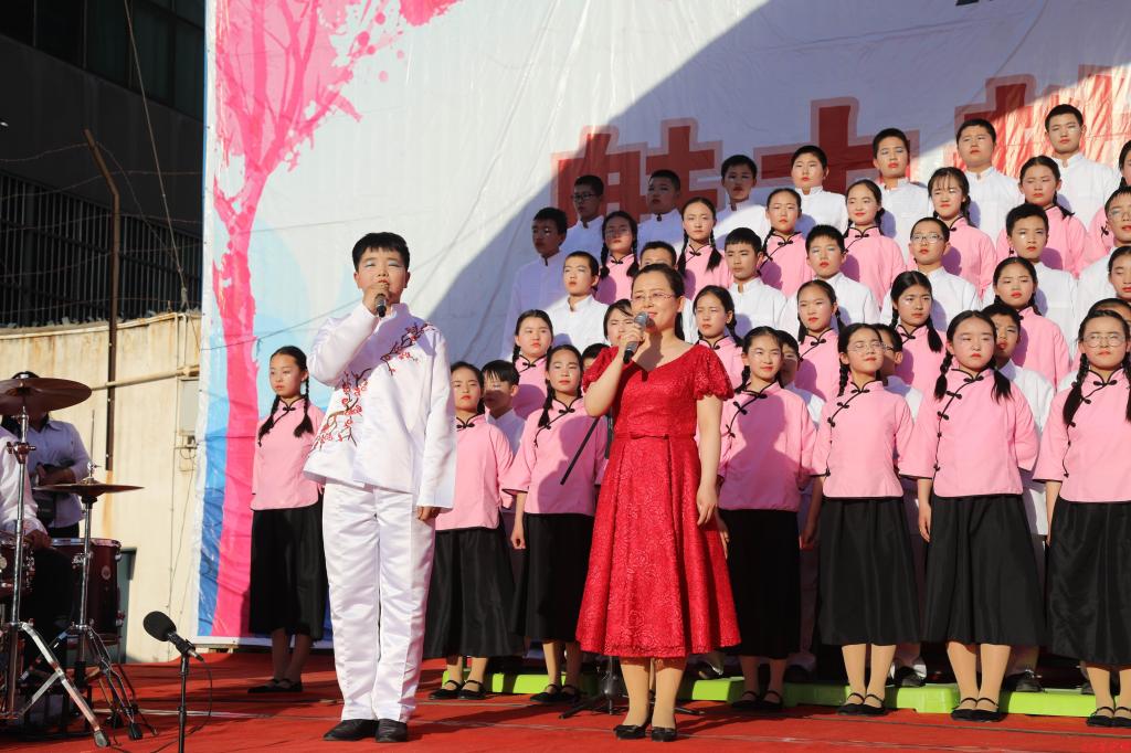 校黨總支書記、副校長王軍玲致開幕詞。她希望同學(xué)們以高雅的情操,禮貌的掌聲,炫動的舞姿,傳承五千年中華文明,用真情演繹城中師生對真善美的執(zhí)著追求。教導(dǎo)處主任劉娜和副主任王琰分別宣布了本屆藝術(shù)節(jié)的獎勵方案和活動日程安排。最后,校長王合敏宣布:城關(guān)中學(xué)第六屆校園文化藝術(shù)節(jié)正式開幕! 本屆藝術(shù)節(jié)的主題是“共抒家國情禮贊新時代”,圍繞這一主題,我們將開展內(nèi)容豐富、形式多樣的藝術(shù)活動,分五個板塊:愛國歌曲合唱、詩經(jīng)頌唱、課本劇表演、才藝大賽以及學(xué)區(qū)藝術(shù)節(jié)優(yōu)秀節(jié)目匯演,同時穿插師生書畫展覽。