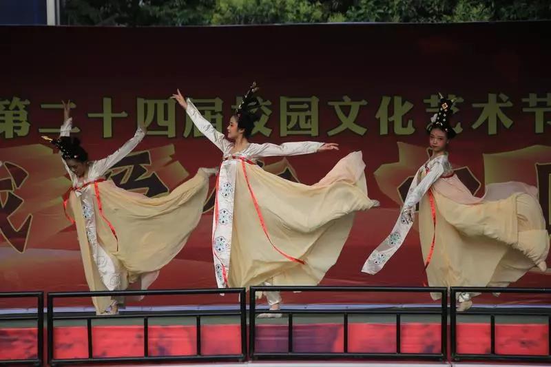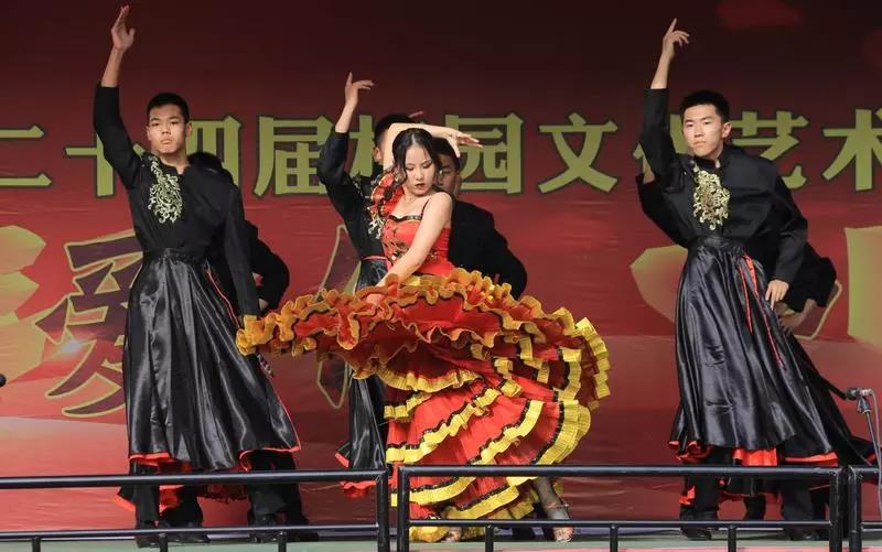 校藝術團的合唱《我愛你中國》《青春舞曲》等耳熟能詳?shù)男珊臀璧浮稌r間都去哪了》深深感染了全體師生,引起大家心中無限遐想與回憶;高一年級的舞臺劇《絲路榮光》、高二年級、校演繹社的舞蹈《大唐氣象》展現(xiàn)了中華文明一步步走出國門,走向世界的大國氣象;初中年級的紅歌聯(lián)唱《映山紅》《媽媽教我一支歌》《駝鈴》《少年,少年,祖國的春天》優(yōu)美的旋律打動人心;舞蹈《炫舞青春》展現(xiàn)著當代青年的朝氣蓬勃、健康向上的青春風貌,瞬間令全場進入沸騰狀態(tài);校藝術團及演藝社的校園劇《華夷之辯》展現(xiàn)了中華兒女愛國進步,不畏強敵,勇于斗爭的風采;炫舞社的現(xiàn)代舞《生僻字》彰顯了對中華漢字以及文化的自豪與自信。