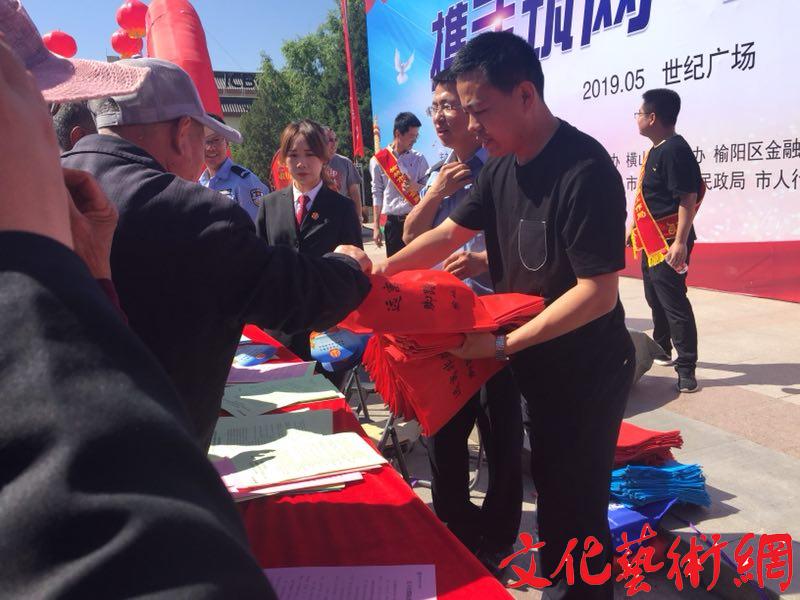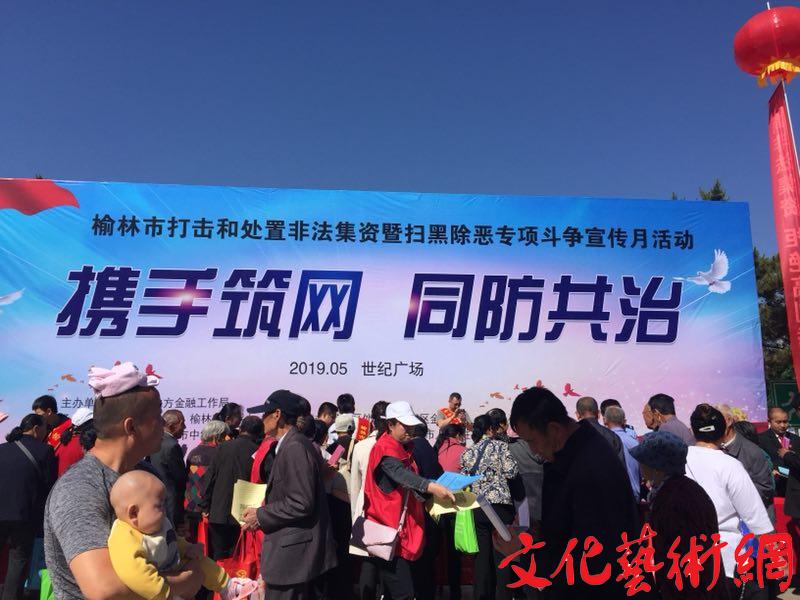 榆林市開(kāi)展2019年化解民間融資風(fēng)險(xiǎn)和打擊處置非法集資宣傳月活動(dòng)文化藝術(shù)網(wǎng)—文化藝術(shù)報(bào)訊(記者 劉燕郡 見(jiàn)習(xí)記者 惠劉艷)為認(rèn)真落實(shí)《陜西省打擊和處置非法集資工作領(lǐng)導(dǎo)小組辦公室關(guān)于開(kāi)展2019年陜西省防范非法集資宣傳月活動(dòng)的通知》文件精神,做好金融處非知識(shí)宣傳教育工作,提高人民群眾防范非法集資意識(shí),5月21日上午,由榆林市地方金融工作局主辦,榆林市處非辦、榆林市掃黑辦、榆陽(yáng)區(qū)處非辦、橫山區(qū)處非辦、榆陽(yáng)區(qū)金融辦承辦的以“攜手筑網(wǎng)、同防共治”為主題的化解民間融資風(fēng)險(xiǎn)和打擊處置非法集資宣傳月活動(dòng)在榆林世紀(jì)廣場(chǎng)開(kāi)展。