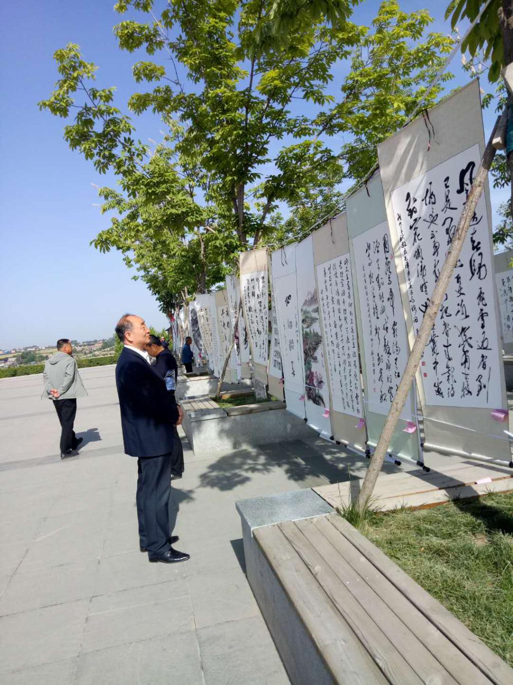 文化藝術(shù)網(wǎng)-文化藝術(shù)報訊(薛立興)5月21日,寶雞市扶風(fēng)、眉縣、麟游、金臺等四縣區(qū)“謳歌新時代、點贊新寶雞”慶祝新中國成立70周年老年書畫聯(lián)展在扶風(fēng)縣國家濕地公園景山廣場舉行。來自四縣區(qū)書畫愛好者近百人參加了這次老年書畫聯(lián)展。