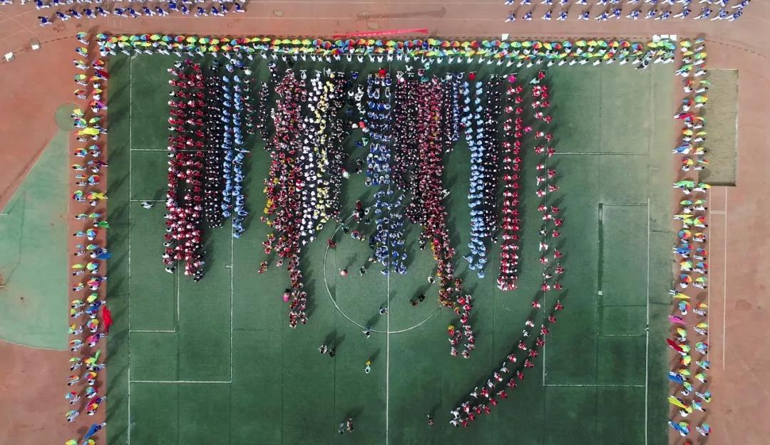 活動(dòng)現(xiàn)場,鮮艷的五星紅旗伴隨著嘹亮的國歌冉冉升起;踏著輕快的步伐,各代表隊(duì)排著整齊的隊(duì)形,舞動(dòng)著手中的彩旗闊步向主席臺(tái)走來。他們個(gè)個(gè)衣著鮮艷、面帶笑容,展示出莘莘學(xué)子蓬勃的朝氣與活力。