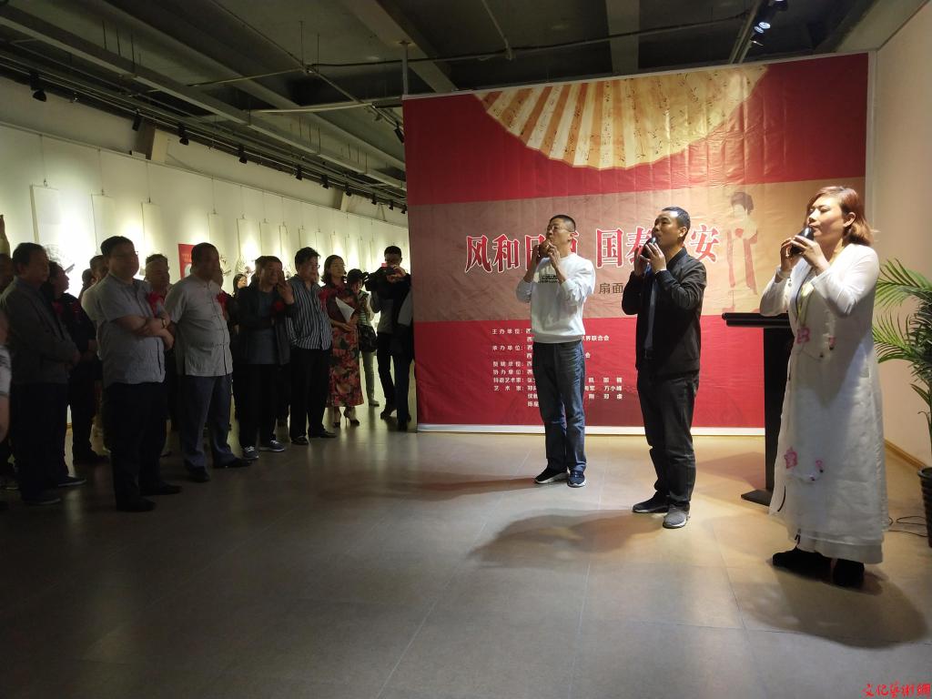 文化藝術(shù)網(wǎng)-文化藝術(shù)報訊(記者 齊敏)5月11日,由西安市美術(shù)家協(xié)會、西安市未央?yún)^(qū)文學(xué)藝術(shù)界聯(lián)合會主辦,西安圣普美術(shù)館、西安市未央?yún)^(qū)美術(shù)家協(xié)會承辦,西安和泰化工有限公司贊助,西安市塤樂學(xué)會協(xié)辦的《風(fēng)和日麗、國泰民安》扇面小品作品展在大明宮西安圣普美術(shù)館開展。陜西省美協(xié)副秘書長何虎林、西安市美術(shù)家協(xié)會副主席李新平、未央?yún)^(qū)文聯(lián)副主席兼秘書長王宏,西安圣普美術(shù)館館長邵楠,西安市未央?yún)^(qū)美術(shù)家協(xié)會主席出席開幕活動。 此次參展的有張文敏、兀西軍、李凱、邵楠,鄭鴻福、劉振中、劉海軍、方小峰、侯新東、何軍文、王剛、鄭虔、陳星光、王允含十四位當(dāng)代優(yōu)秀藝術(shù)家,作品二百余幅,繪畫題材涉及,山水、花鳥、人物等多種形式。王剛在接受記者采訪時表示,扇面雖小但是包含的信息量大,希望通過這個展示給大家一種美的感受。據(jù)悉此次展覽持續(xù)至5月17日。 折扇最早出現(xiàn)于宋代,折扇又稱“聚頭扇”、“聚骨扇”、“折疊扇”,當(dāng)時作為一種禮物送給達官貴人。到了明代,折扇便開始廣泛流行,在當(dāng)時也極受文人士大夫喜愛,盛行一時,扇畫在明代也達到了高峰,明代幾乎所有的文人雅士、書畫家都書畫過扇子,沈周、唐寅、文征明、仇英等等,都是扇畫的高手,都有許多精品扇畫流傳于世。從清代至民國,折扇仍是文人騷客的雅物,文人墨客也熱衷于畫扇、玩扇、藏扇,從“清四僧”到“揚州八怪”“金陵八家”,再到海派的趙之謙、任伯年、吳昌碩、虛谷,皆是扇畫的一流能手,他們這些人也都以各自獨立的精神和獨特的風(fēng)格,開創(chuàng)了一代書風(fēng)畫風(fēng),并為中國扇畫增添了許多精品佳作。