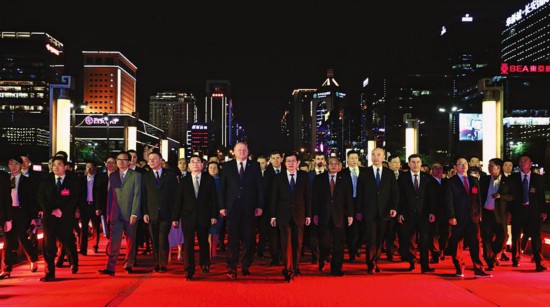 (本圖來源:陜西日報記者 宋紅梅攝) 又訊(記者 李濟樸)5月10日晚,雄偉的西安城墻永寧門前,一場盛世大唐迎接貴賓的最高禮儀,迎接著前來參加第四屆絲綢之路國際博覽會暨中國東西部合作與投資貿(mào)易洽談會的中外嘉賓,向世界展示著東方神韻。 全國政協(xié)副主席高云龍、俄羅斯聯(lián)邦總統(tǒng)駐烏拉爾聯(lián)邦區(qū)全權(quán)代表尼古拉·尼古拉耶維奇·楚卡諾夫、柬埔寨副首相尹財利、陜西省委書記胡和平、陜西省省長劉國中等出席入城式。 一條絲綢鋪出的路,古往今來穿越時空;一曲震撼人心的旋律,彰顯大唐盛世之繁華。當(dāng)晚8時50分,入城儀式開始。來自俄羅斯、柬埔寨、韓國、馬來西亞等國家和地區(qū)的200余位各國政要、部長級官員、地方領(lǐng)導(dǎo)人、國際組織代表、大型企業(yè)負(fù)責(zé)人及知名專家學(xué)者,跟隨裝扮的宮廷仕女由御道中段向前徐徐行進(jìn)。南門廣場上擺開了迎賓陣列,嘉賓們沉醉在動人的舞姿和古色古香的唱誦中,駐足欣賞,合影留念。 落吊橋,開城門,迎貴賓。隨著吊橋落下,城門徐徐打開。踏著腳下的千年之路,嘉賓們穿過流光溢彩的護城河,領(lǐng)略著盛唐遺風(fēng)的獨特魅力。繞過月城、甬道,來到永寧門內(nèi)中心地帶甕城,嘉賓們在此觀看大唐迎賓盛禮文藝演出《夢長安》。由“永恒之城”“唐韻風(fēng)神”“盛世國都”三個章節(jié)構(gòu)成的演出,以震撼人心的旋律,彰顯大唐盛世之繁華,展現(xiàn)出禮儀之邦對世人友好往來的熱切歡迎,令嘉賓們仿佛穿越時空,身臨其境。 陜西省副省長魏增軍、西安市市長李明遠(yuǎn)等出席入城式。 編輯:齊敏 |