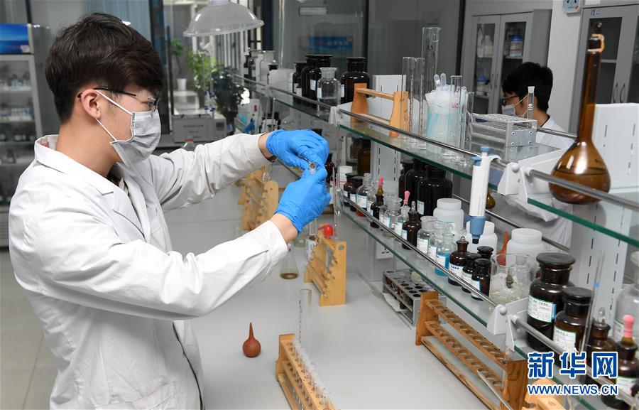 在陜西延安創(chuàng)新小鎮(zhèn),一家環(huán)保公司的實(shí)驗(yàn)員在實(shí)驗(yàn)室做地表水的理化實(shí)驗(yàn)(4月25日攝)。新華社記者 劉瀟攝