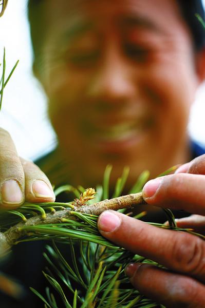 通過試驗(yàn),張立強(qiáng)發(fā)現(xiàn)樟子松耐旱,強(qiáng)大的根系還能固牢沙土,而紅松木質(zhì)好,又能產(chǎn)松子,效益高。將二者嫁接,沙漠就能產(chǎn)生經(jīng)濟(jì)價(jià)值了。