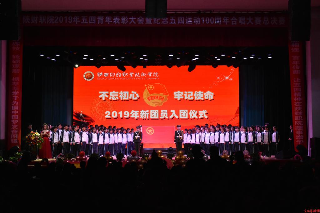 陜財職院團委舉辦2019年“五·四”青年表彰大會暨新團員入團儀式文化藝術(shù)報-文化藝術(shù)網(wǎng)訊(王炅 記者 劉林楓) 4月29日,陜西財經(jīng)職業(yè)技術(shù)學(xué)院團委在大禮堂成功舉辦了“青春心向黨·建功新時代”2019年“五·四”青年表彰大會暨“不忘初心·牢記使命”新團員入團儀式。學(xué)院黨委書記張志華、副院長劉曉玉、黨委副書記兼紀委書記劉文雅、副院長于新和以及各二級學(xué)院、部門負責(zé)人出席了活動,參加活動的師生代表共計1400余人。