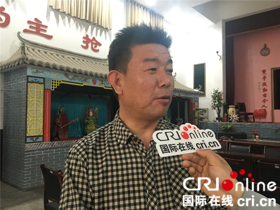 合陽提線木偶劇團(tuán)團(tuán)長(zhǎng)王紅民接受國(guó)際在線陜西頻道采訪 攝影 馮妍