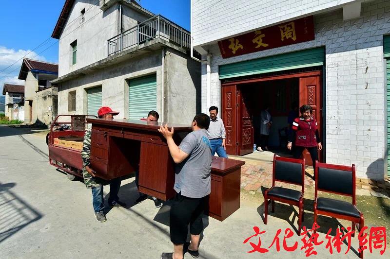 陜西城固縣企業(yè)家殷科為鄉(xiāng)賢唐楷鑒贈(zèng)送書(shū)柜桌椅