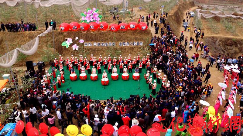 榆林市副市長(zhǎng)、米脂縣委書記王國(guó)忠宣布米脂縣首屆果花文化旅游節(jié)開幕 活動(dòng)現(xiàn)場(chǎng),人山人海,鑼鼓喧天,嗩吶齊鳴,獨(dú)具特色的米脂秧歌在這黃土溝壑的山峁上扭出了全縣人民種植山地蘋果致富的喜悅之情;吹打樂團(tuán)高亢嘹亮的嗩吶奏樂吹的萬(wàn)株果花競(jìng)相綻放;百余人米脂婆姨旗袍走秀穿越果園與450畝果花比美添錦繡。伴隨著昨夜一場(chǎng)春雨的洗禮,陣陣微風(fēng)吹得果花飄香迎來(lái)八方賓客。
