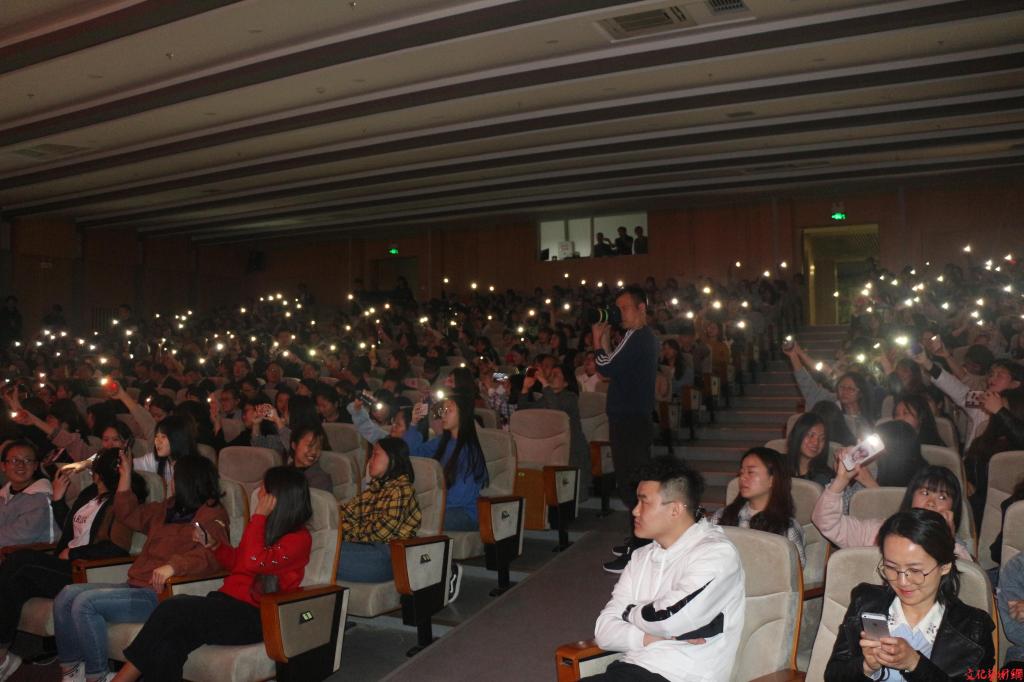 情歌組合任向東與劉李給大家?guī)砹恕段靼补适隆贰缎腋5寞傋印穬墒赘枨,旋律活潑、抒情,像是把自己心中的話娓娓道來,跟著音樂的?jié)奏,同學(xué)們紛紛打開手機(jī)閃光燈搖擺,點(diǎn)燃了自己心中的熱情。特別是《幸福的瘋子》這首歌,簡(jiǎn)單的旋律讓同學(xué)們才聽了兩小節(jié)就可以跟著歌手一起合唱,把現(xiàn)場(chǎng)變成了演唱會(huì)……