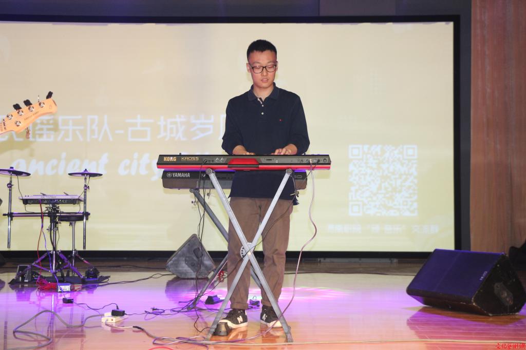 本土新派搖滾樂隊(duì)——頑濤與樂隊(duì)的一首《愛誰誰》拉開了活動(dòng)帷幕。吉他、電吉他、鼓、電子琴等奏出昂揚(yáng)的旋律,現(xiàn)場(chǎng)氣氛瞬間歡騰起來。接著,他們又演奏了《放肆的愛》《西安人的泡饃》等本地元素濃厚的樂曲,引起了同學(xué)們的共鳴,鼓掌、歡呼聲不絕于耳。