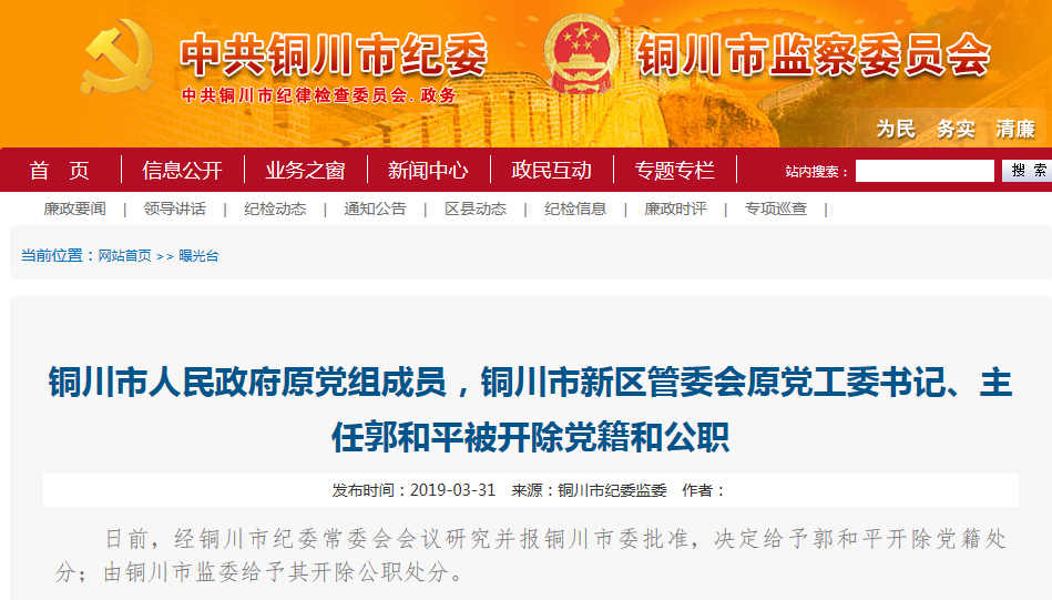 銅川市新區(qū)管委會原黨工委書記郭和平被雙開
