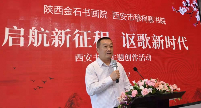 文化藝術(shù)網(wǎng)-文化藝術(shù)報(bào)訊(全媒體記者 魏曉文)5月12日,由陜西金石書(shū)畫(huà)院主辦的“啟程新征程,謳歌新時(shí)代”書(shū)畫(huà)主題創(chuàng)作活動(dòng)在西安高新區(qū)清華科技園拉開(kāi)帷幕。騫國(guó)政、劉明華、姚來(lái)貴、白阿林、楊季虹、曹石峻、王東鴻、康金鴻、臧偉建、邢德朝、程正、張世帥等書(shū)法家、作家、畫(huà)家以及企業(yè)界人士參加。