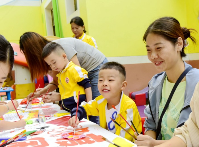 活動現(xiàn)場,堯禾社區(qū)愛心媽媽和老師們聲情并茂地向孩子們講解國慶節(jié)的由來和意義,加深孩子們對國慶節(jié)的認(rèn)識。隨后分發(fā)水彩筆,與孩子們一起繪畫。一幅幅充滿童趣、真情和活力的畫卷,在上色后變得栩栩如生。畫卷繪制結(jié)束后,孩子們與國旗合影,手擎長卷一起唱響國歌,高呼“祖國母親,生日快樂”,祝福偉大祖國繁榮昌盛!
