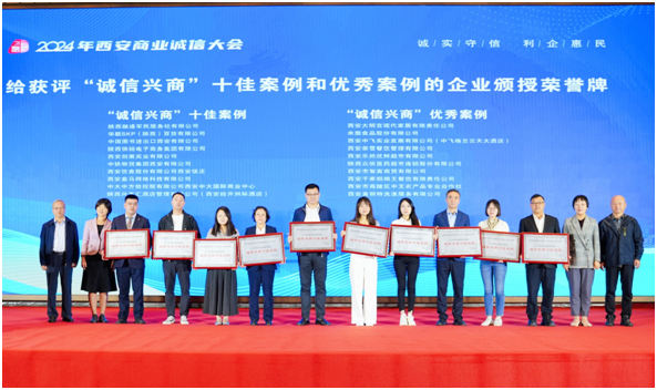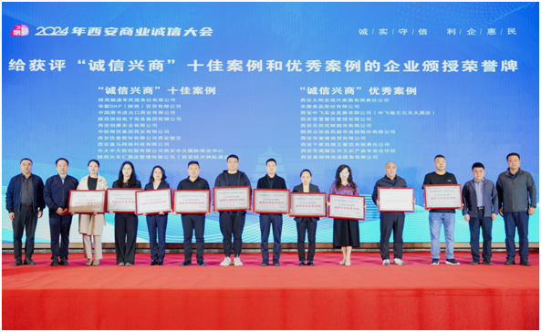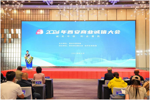 文化藝術(shù)網(wǎng)-文化藝術(shù)報訊 (全媒體記者 齊敏)為深入貫徹黨的二十大和二十屆三中全會精神,落實商務(wù)部和省商務(wù)廳關(guān)于開展“誠信興商宣傳月”活動的有關(guān)要求,持續(xù)推動全市商務(wù)領(lǐng)域信用體系建設(shè),9月30日,由西安市商務(wù)局主辦,西安商業(yè)聯(lián)合會、經(jīng)開區(qū)商務(wù)局協(xié)辦的2024年西安商業(yè)誠信大會在西安經(jīng)開洲際酒店舉行。商務(wù)部駐西安特派辦、省商務(wù)廳、市委宣傳部、市信用辦、市發(fā)改委、市市場監(jiān)管局、市稅務(wù)局,各區(qū)縣、開發(fā)區(qū)商務(wù)主管部門,以及有關(guān)商協(xié)會、相關(guān)企業(yè)等120余人參加了會議。 會上,舉行了2024年西安市“誠信興商宣傳月”啟動儀式,為獲評2024年全市商務(wù)領(lǐng)域“誠信興商”十佳案例和優(yōu)秀案例的企業(yè)頒授了榮譽牌。陜西黃馬甲物流配送有限公司、陜西融通軍民服務(wù)社有限公司做了“誠信興商”典型案例專題分享,西安商業(yè)聯(lián)合會會長、方欣食品有限公司董事長楊新贊代表行業(yè)商協(xié)會做了誠信倡議發(fā)言,廣發(fā)證券西安浐灞營業(yè)部總經(jīng)理袁兆勇以《誠信企業(yè)如何把握宏觀經(jīng)濟(jì)周期趨勢》為題進(jìn)行了主旨演講。