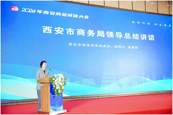 西安市商務(wù)局副局長吳慧娟指出,西安市歷來重視誠信建設(shè)工作,今年是全國“誠信興商宣傳月”活動舉辦的第二十個年頭,在省商務(wù)廳和市委文明辦、市信用辦的有力指導(dǎo)下,我市持續(xù)深入開展“誠信興商”系列活動,組織了2024年銀企對接會(西安站)等活動,在全市范圍征集遴選“誠信興商”典型案例,通過召開全市商業(yè)誠信大會等形式,持續(xù)培育誠信理念,弘揚誠信文化。自商務(wù)部2021年開展“誠信興商”典型案例評選以來,我市西安愛菊糧油集團(tuán)《要讓百姓吃的放心 企業(yè)就要下“狠心”》、中國航發(fā)動力公司《用誠信夯實企業(yè)高質(zhì)量發(fā)展之基》、陜西黃馬甲物流配送有限公司《打通城市供應(yīng)鏈 誠信惠及千萬家》等案例先后入選全國誠信興商典型案例,這些案例都是推動誠信興商的生動實踐,展現(xiàn)了行業(yè)企業(yè)“誠實守信 商貿(mào)先行”的責(zé)任擔(dān)當(dāng)和良好形象。