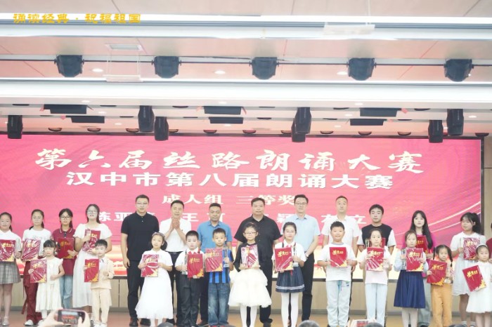 據(jù)了解,“絲路朗誦大賽”是陜西省朗誦協(xié)會(huì)于2019年推出的具有鮮明本土特色的原創(chuàng)性、專業(yè)性朗誦賽事,大賽立足“絲路的起點(diǎn)、詩(shī)歌的故鄉(xiāng)”這一文化高地,通過(guò)朗誦藝術(shù)傳播絲路精神。第六屆絲路朗誦大賽暨漢中市第八屆朗誦大賽從今年4月初啟動(dòng),到6月上旬結(jié)束,全市參賽選手近2.5萬(wàn)人,創(chuàng)歷年參賽人數(shù)新高。通過(guò)各縣區(qū)及相關(guān)大中小學(xué)的多場(chǎng)海選賽、市級(jí)十余場(chǎng)復(fù)賽的比拼,最終350余名(組)選手過(guò)關(guān)斬將晉級(jí)漢中市總決賽。脫穎而出的一批優(yōu)秀選手,又先后晉級(jí)到了第六屆絲路朗誦大賽陜西省決賽和全國(guó)總決賽的舞臺(tái)上,他們不負(fù)期望,信心滿懷地與來(lái)自全國(guó)的優(yōu)秀選手同臺(tái)競(jìng)技,最終我市17人(組)獲得全國(guó)總決賽一等獎(jiǎng),28人(組)獲得全國(guó)總決賽二等獎(jiǎng),27人(組)獲得全國(guó)總決賽三等獎(jiǎng)。