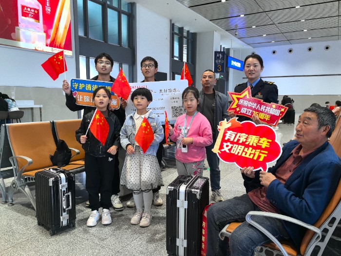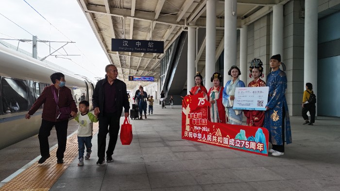 10月1日,漢中車務(wù)段聯(lián)合漢中市文旅局,在漢中站站前廣場、候車大廳內(nèi),以慶祝中華人民共和國成立75周年為主題,上演了一場精彩的傳統(tǒng)文化與文明出行主題相結(jié)合的快閃活動,吸引了眾多旅客駐足觀看并打卡留念。