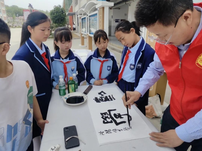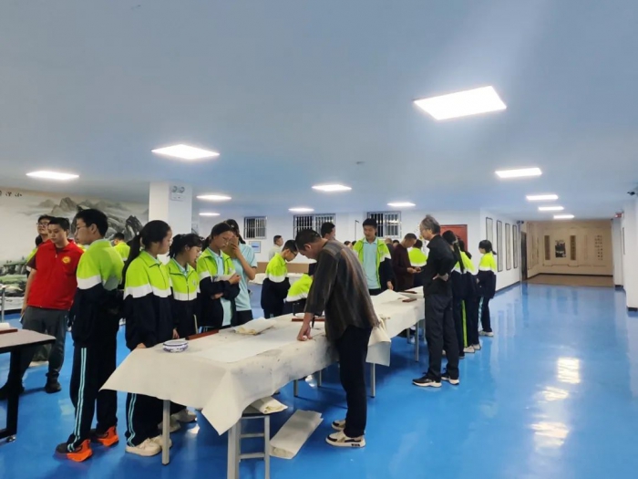 揭牌儀式后,校園筆繪活動在校園如火如荼地舉行;顒蝇F(xiàn)場,書畫家們揮毫潑墨,為師生帶來書畫創(chuàng)作示范與指導(dǎo),題寫勵志名言,激發(fā)學(xué)生對傳統(tǒng)文化的熱愛。文化館同步開展非遺體驗(yàn),讓學(xué)生近距離感受桄桄戲、皮影戲、杖頭木偶等本土非遺魅力,并通過專題講座深化對非遺保護(hù)的理解。