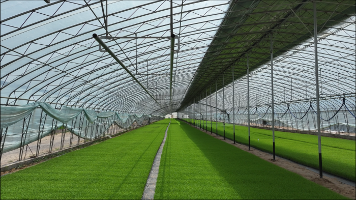 初夏時(shí)節(jié),榆陽(yáng)大地萬(wàn)物復(fù)蘇、生機(jī)盎然。在榆林市綠興農(nóng)業(yè)科技有限公司的水稻育秧基地,15600平方米的嫩綠秧苗正在智能溫控大棚內(nèi)茁壯成長(zhǎng)。與傳統(tǒng)育秧不同,這里采用的是被譽(yù)為“水稻種植革命”的缽體育秧技術(shù),采用精準(zhǔn)對(duì)穴播種,不僅能夠培育出素質(zhì)好、返青快、抗逆性強(qiáng)的秧苗,移栽效率也將顯著提升,尤其適合北方寒地稻區(qū)和鹽堿地環(huán)境。 “過(guò)去我們用育苗毯進(jìn)行育苗,育好后插到田間去,會(huì)使根部受到嚴(yán)重傷害,稻秧苗就會(huì)有15天到20天的緩苗期。缽式育苗最大的優(yōu)點(diǎn)就是沒(méi)有緩苗期,根系插到田間以后馬上就會(huì)緩苗緩青,然后迅速建立冠層結(jié)構(gòu),馬上進(jìn)行光合作用,所以育缽苗優(yōu)勢(shì)非常明顯!边|寧省農(nóng)業(yè)科學(xué)院博士三級(jí)研究員張忠旭說(shuō)。