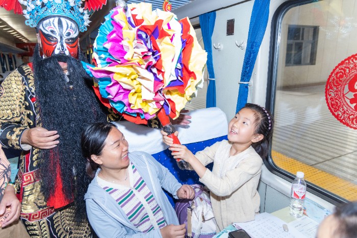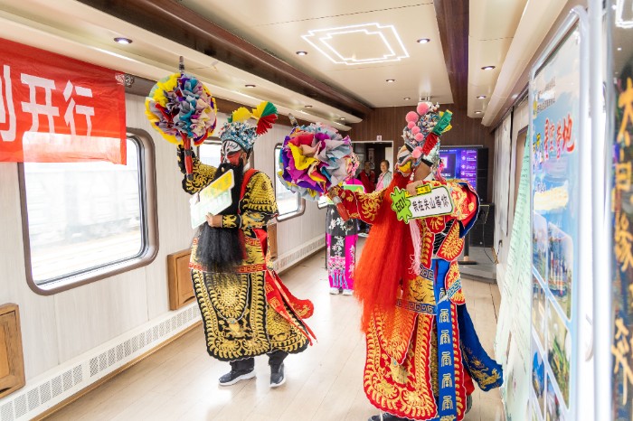 首發(fā)旅游專列車(chē)廂在展陳設(shè)計(jì)上突出“一車(chē)廂一主題”的特色,全面融入了周秦文化元素與寶雞的非遺、人文資源。列車(chē)運(yùn)行期間,寶雞文旅宣傳推介活動(dòng)精彩豐富、貫穿全程,游客不僅能現(xiàn)場(chǎng)體驗(yàn)西秦刺繡的精美制作,還能品嘗搟面皮、馬蹄酥等西府美食,近距離欣賞非遺傳承人技藝表演,真正實(shí)現(xiàn)了“人在途中、景在窗外、文化在身邊”的沉浸式體驗(yàn)。同時(shí),專列還配備了移動(dòng)KTV與觀景休閑區(qū),讓游客在旅途中感受多元文化魅力。專列?糠鲲L(fēng)縣、眉縣、岐山縣、千陽(yáng)縣、隴縣期間,各縣區(qū)結(jié)合自身文化特色,開(kāi)展了差異化迎賓活動(dòng)和旅游咨詢服務(wù)。