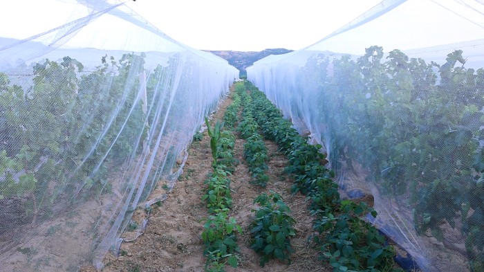 走進農(nóng)場的葡萄采摘園,滿眼青翠的葡萄樹葳蕤茂盛,而在葡萄架下的陰涼處,綠油油的豌豆,毛豆蓬勃生長。目前,園內(nèi)種植葡萄50畝,豌豆、毛豆40畝,預(yù)計總產(chǎn)量6萬斤、收入6萬多元。 葡萄生長周期長,植株間距較大,與豌豆套種,每畝地多“擠”出一份收入,實現(xiàn)了“一地生多金,一園創(chuàng)雙收”的集約化發(fā)展。套種模式不僅有經(jīng)濟效益,還有生態(tài)效益,采收后的豌豆直接翻埋還田,既能轉(zhuǎn)化為葡萄生長的天然有機肥,又優(yōu)化土壤養(yǎng)分結(jié)構(gòu),提升土壤肥力。“我們種植的葡萄采用了四位一體生態(tài)有機技術(shù),用羊糞、農(nóng)作物有機廢料等作肥料,產(chǎn)出的農(nóng)產(chǎn)品是綠色食物,很健康。葡萄下面套種豌豆、黃豆、黑豆,采用綠肥壓青技術(shù),作物在光照、水肥等方面形成互補,有效提高農(nóng)產(chǎn)品品質(zhì)與效益。”農(nóng)場技術(shù)員邊高林說。