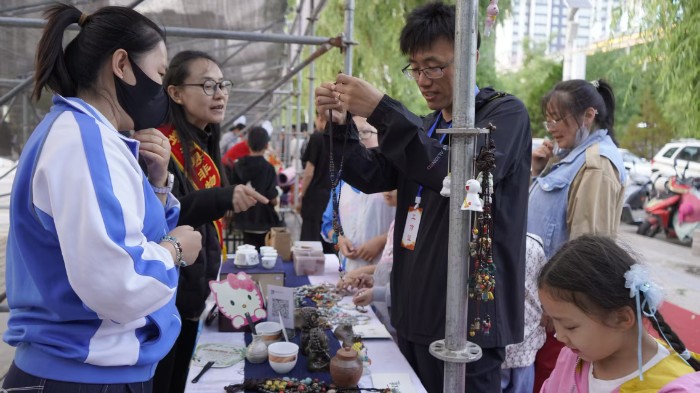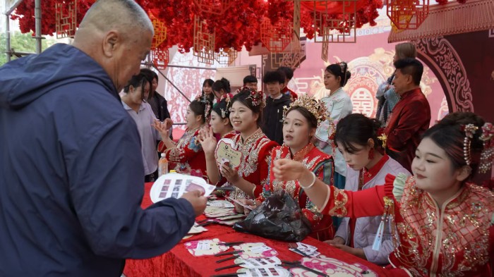 活動(dòng)現(xiàn)場(chǎng)劃分為宣傳區(qū)、互動(dòng)區(qū)、展示區(qū)三個(gè)部分,每個(gè)區(qū)域都亮點(diǎn)十足,內(nèi)容豐富。 宣傳區(qū)通過(guò)設(shè)立宣傳臺(tái),擺放展板,循環(huán)播放宣傳錄音,發(fā)放《非遺保護(hù)法》《群眾文化保護(hù)法》等宣傳資料,紙杯、毛巾、手提袋、小凳子等實(shí)用的宣傳品,吸引過(guò)往市民駐足了解,大家一邊翻閱資料,一邊向工作人員詢(xún)問(wèn)關(guān)于非遺保護(hù)的問(wèn)題,現(xiàn)場(chǎng)氛圍熱烈而和諧,大家在交流中對(duì)非遺保護(hù)有了更深入地認(rèn)識(shí)。 互動(dòng)區(qū)則是歡樂(lè)的海洋:非遺項(xiàng)目靖邊跑驢和靖邊婚俗展演引得觀眾陣陣喝彩,現(xiàn)場(chǎng)還邀請(qǐng)群眾參與互動(dòng)。一位參與靖邊跑驢互動(dòng)的市民笑著說(shuō):“以前都是在電視上看,今天自己親身體驗(yàn),才知道這跑驢表演這么有意思,感覺(jué)一下子就和老祖宗留下來(lái)的東西親近了!本高吇樗渍寡輨t讓大家領(lǐng)略了傳統(tǒng)婚俗的莊重與熱鬧,讓現(xiàn)場(chǎng)觀眾沉浸在傳統(tǒng)婚慶氛圍之中。 展示區(qū)“非遺集市體驗(yàn)區(qū)”兩側(cè)小舞臺(tái)上,說(shuō)書(shū)藝人繪聲繪色地編排著古韻新風(fēng),陜北民歌手用嘹亮的嗓音唱出了家鄉(xiāng)人民的熱情豪放。柳編、剪紙、泥塑、面塑、刺繡、皮影等手工類(lèi)非遺項(xiàng)目不僅展示了精湛的技藝,還邀請(qǐng)市民現(xiàn)場(chǎng)互動(dòng)體驗(yàn)。市民李女士在剪紙展臺(tái)前,跟著剪紙藝人學(xué)起了剪紙,不一會(huì)兒,一張簡(jiǎn)單的剪紙作品就在她手中誕生,她興奮地說(shuō):“這剪紙?zhí)衿媪耍约簞?dòng)手做出來(lái)感覺(jué)特別有成就感!爆F(xiàn)場(chǎng)的手工類(lèi)非遺項(xiàng)目還提供售賣(mài)服務(wù),不少市民挑選到了心儀的手工藝品。 飲食類(lèi)非遺項(xiàng)目同樣人氣爆棚。剁蕎面、羊雜碎、老八碗、豬排骨、油饃饃、燉羊肉、爐饃麻花、陜北米酒等美食一字排開(kāi),每個(gè)攤位前都準(zhǔn)備了小型一次性餐具,方便市民品嘗購(gòu)買(mǎi)。市民張先生一邊品嘗豬排骨,一邊豎起大拇指:“這味道太正宗了,平時(shí)都很難吃到這么地道的家鄉(xiāng)味,今天可真是大飽口福! “此次‘文化和自然遺產(chǎn)日’非遺展示活動(dòng)主打就是接地氣,我們通過(guò)豐富多樣的形式,讓靖邊非遺真正融入群眾生活!本高吙h公共文化服務(wù)中心主任劉昊表示,“從非遺技藝體驗(yàn)到傳統(tǒng)美食品嘗,從文創(chuàng)產(chǎn)品售賣(mài)到現(xiàn)場(chǎng)傳播互動(dòng),我們希望打破非遺與大眾之間的隔閡,讓老手藝既‘看得見(jiàn)、摸得著’,更‘帶得走、傳得開(kāi)’! 編輯:俞林 責(zé)編:王越美 終審:慕瑜上一篇:榆林靖邊五臺(tái)森林公園夏日煥新 繽紛游樂(lè)繪就活力畫(huà)卷