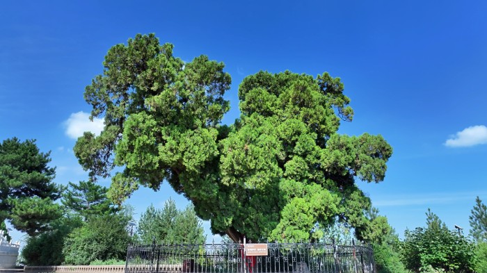 府谷高寒嶺上的“中華版圖柏”文化藝術(shù)網(wǎng)-文化藝術(shù)報(bào)訊(全媒體記者 李娟娟 通訊員 樊仲森 馬宇強(qiáng) 張顥鏵)府谷縣海拔最高的田家寨鎮(zhèn)高寒嶺上,有一棵樹齡近千年的古柏樹,由于樹冠剪影極像一幅中國版圖,被稱為“中華版圖柏”。 經(jīng)過鑒定,這棵柏樹樹齡990余年,樹高15米,胸徑0.7米,樹干較粗,枝葉茂盛,蒼勁有力,是國家一級保護(hù)古樹。 這棵古柏外形酷似一只雄雞,又像一幅中國地圖,所以叫它“雞公樹”“地圖樹”。2016年2月3日,作家梁衡在《人民日報(bào)》發(fā)表散文《中華版圖柏》,從此這棵樹為更多人知曉,人們也稱它“中華版圖柏”。 高寒嶺海拔1426米,現(xiàn)在山嶺上保留500年以上的古樹63株,天然杜松、側(cè)柏、油松近15萬株,占地5050畝,其中杜松是我國重點(diǎn)保護(hù)的稀有樹種。 高寒嶺游客眾多,“中華版圖柏”景點(diǎn)人氣最旺。游客聆聽講解,打卡拍照,在古柏樹下享受自然景觀,感受歲月沉淀。 “‘中華版圖柏’具有獨(dú)特的形態(tài)和深厚的文化內(nèi)涵,在這棵千年古樹上,我們感受到中華民族的堅(jiān)韌、堅(jiān)強(qiáng)和生生不息的生命力,以及對未來的希望和憧憬!庇慰蛷垨|波說。 “一棵古柏樹,帶活了當(dāng)?shù)氐穆糜谓?jīng)濟(jì),現(xiàn)在每年的游客大致在10萬人。每年五月上旬,牡丹花盛開的十天時(shí)間里,每天游客突破4000人次!备吆畮X景區(qū)講解員賈越說。 近年來,田家寨鎮(zhèn)啟動(dòng)了高寒嶺萬畝杜松原始森林保護(hù)項(xiàng)目,將“中華版圖柏”納入核心保護(hù)范圍,涵蓋森林防火、生態(tài)修復(fù)及文化旅游開發(fā),配套建設(shè)了森林消防管理站和森林公園服務(wù)中心;先后栽植油松、側(cè)柏等苗木30多萬株,其中經(jīng)濟(jì)林16萬余株,治理面積6560畝,以良好的生態(tài)屏障優(yōu)化古樹生長環(huán)境。 “我們將通過農(nóng)文旅融合發(fā)展模式,探索生態(tài)保護(hù)與旅游經(jīng)濟(jì)協(xié)調(diào)發(fā)展新路徑,激勵(lì)更多人參與古樹保護(hù)和生態(tài)建設(shè),讓古樹在保護(hù)中‘老有所依’,成為府谷縣生態(tài)建設(shè)中的標(biāo)志性景觀。”府谷縣田家寨鎮(zhèn)黨委委員、組織委員尚桂平說。
