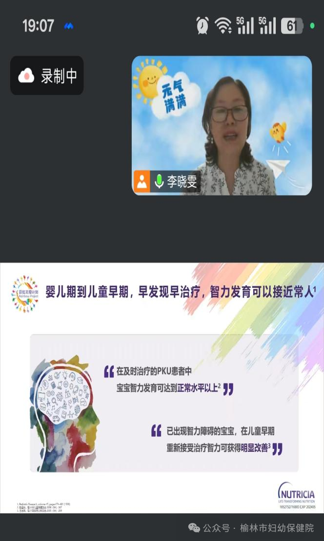 科學(xué)守護(hù)“不食人間煙火的天使” ——榆林市婦幼保健院特邀中日友好醫(yī)院專家李曉雯云端開講 榆林市婦幼保健院文化藝術(shù)網(wǎng)-文化藝術(shù)報訊(全媒體記者 李娟娟 通訊員 郝樂)每一口食物都是精密的計算,每一餐飯食都是愛的方程式。苯丙酮尿癥(PKU)是一種氨基酸代謝異常的遺傳性疾病,終身需要特殊飲食治療。全國的平均發(fā)病率約為1:11000,我市的發(fā)病率高于全國平均水平約三倍,榆林市婦幼保健院是榆林市唯一的PKU定點治療機(jī)構(gòu),負(fù)責(zé)患兒治療指導(dǎo)和特殊食品供給。