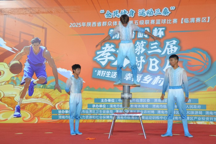 本屆賽事亮點頻出,賽場內(nèi)外洋溢著濃郁的鄉(xiāng)土氣息與活力。民俗展演中,秦腔、雜技、舞龍等傳統(tǒng)表演引得觀眾陣陣喝彩,老藝人演示的草編技藝讓游客近距離感受非遺魅力;臨渭農(nóng)特產(chǎn)品專區(qū)人頭攢動,孝義醪糟、粉條等本土好物成熱銷品,周邊農(nóng)家樂日均接待食客超百桌。比賽間隙的兒童投籃游戲,讓賽場變成歡樂的海洋,鄉(xiāng)村體育的快樂感染著每一個人。