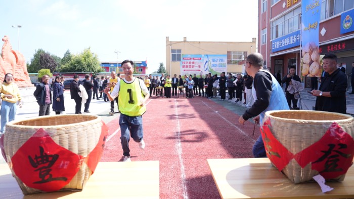 “今年雖遇干旱高溫挑戰(zhàn),但在科學管理和大家共同努力下,我們依然迎來了糧滿倉、果滿枝的金秋!”曹家灣鎮(zhèn)陜西泰茂農(nóng)業(yè)科技有限公司負責人滿懷自豪地介紹,該公司通過“土地流轉+分紅”模式承包果園700畝,帶動150余戶群眾以土地和勞動力入股參與分紅,村集體經(jīng)濟通過果園承包、機械租賃和勞務輸出等方式增收3萬元。蘋果采摘季帶動100余人務工,務工群眾戶均增收3000元。 既要讓農(nóng)民腰包鼓起來,也要讓鄉(xiāng)村文化生活富起來。此次豐收節(jié)同步舉辦了農(nóng)民趣味運動會,來自全縣10個鎮(zhèn)的隊伍同臺競技,“豐收逐夢·五谷拼圖”考驗協(xié)作能力,“豐收狂歡·玉米投筐”充滿趣味,“豐收樂章·接力夾核桃”盡顯技巧,一系列接地氣的比賽既提升了農(nóng)民的健康水平,也強化了高素質農(nóng)民的生產(chǎn)技能,讓大家在競技中共享豐收樂趣。