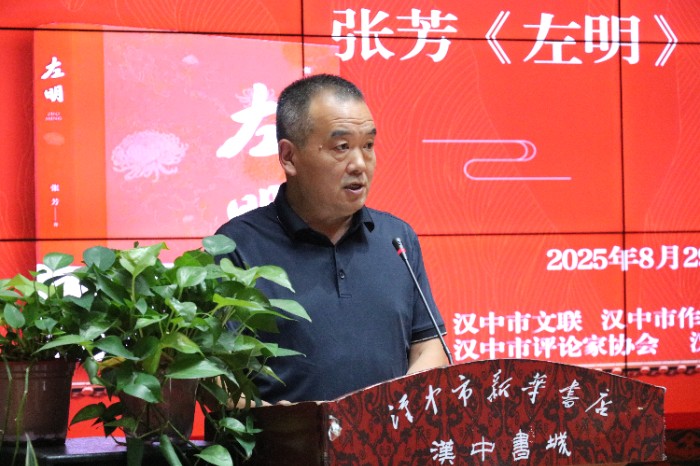 文化藝術(shù)網(wǎng)-文化藝術(shù)報訊(全媒體記者 唐偉 夏東)8月29日下午,由漢中市文聯(lián)、市作協(xié)、陜西理工大學(xué)人文學(xué)院聯(lián)合主辦的長篇小說《左明》讀書分享會在漢中書城舉行。漢中市委宣傳部副部長張博學(xué),陜西太白文藝出版社文化藝術(shù)出版中心主任強(qiáng)紫芳,市委黨校常務(wù)副校長黃中利,市政協(xié)文史委主任傅傳偉,市檔案館原館長侯富樂,市文聯(lián)原主席王蓬,市新華書店副總經(jīng)理劉重學(xué)等與各界專家學(xué)者50余人出席。