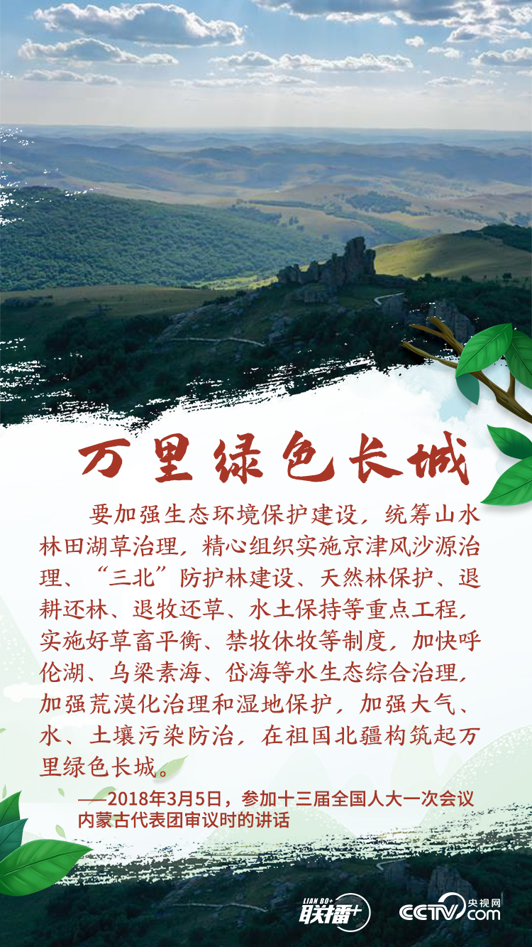 聯(lián)播+ | 習近平這樣繪就高質(zhì)量發(fā)展的生態(tài)底色在催人奮進的春天里,2021年全國兩會勝利閉幕。會議期間,習近平總書記四到團組,同代表委員們深入交流。 “把生態(tài)保護放在首位,體現(xiàn)了生態(tài)保護的政治自覺。” “要堅持綠水青山就是金山銀山的理念,堅定不移走生態(tài)優(yōu)先、綠色發(fā)展之路! “走高質(zhì)量發(fā)展之路,就要堅持以人民為中心的發(fā)展思想,堅持創(chuàng)新、協(xié)調(diào)、綠色、開放、共享發(fā)展。” ............ 在參加內(nèi)蒙古代表團、青海代表團審議時,總書記都強調(diào)了“生態(tài)優(yōu)先”的重要性,為做好相關工作標出重點、厘清思路、明確方向。 3月12日是我國第43個植樹節(jié);仡櫧耆珖鴥蓵䦂蟮,總書記對生態(tài)保護格外重視,算細賬、謀長遠,不斷推進綠色發(fā)展,繪就高質(zhì)量發(fā)展生態(tài)底色。央視網(wǎng)《聯(lián)播+》為您梳理相關內(nèi)容,與您一起學習體會。