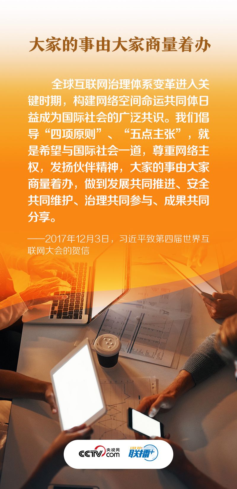 構(gòu)建網(wǎng)絡(luò)空間命運(yùn)共同體 推動(dòng)全球互聯(lián)網(wǎng)發(fā)展治理“網(wǎng)絡(luò)空間是人類共同的活動(dòng)空間,網(wǎng)絡(luò)空間前途命運(yùn)應(yīng)由世界各國共同掌握。” 2015年,習(xí)近平主席在第二屆世界互聯(lián)網(wǎng)大會開幕式上發(fā)表主旨演講,深入闡述全球互聯(lián)網(wǎng)發(fā)展治理的“四項(xiàng)原則”“五點(diǎn)主張”,首次提出“共同構(gòu)建網(wǎng)絡(luò)空間命運(yùn)共同體”,為推動(dòng)全球互聯(lián)網(wǎng)發(fā)展治理貢獻(xiàn)了中國智慧、中國方案。 11月9日至11日,2022年世界互聯(lián)網(wǎng)大會烏鎮(zhèn)峰會將在浙江烏鎮(zhèn)舉行。央視網(wǎng)《聯(lián)播+》特梳理習(xí)主席關(guān)于全球互聯(lián)網(wǎng)治理的金句,與您一起學(xué)習(xí)。
