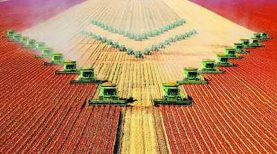 黑龍江墾區(qū)秋收大機(jī)械作業(yè)。(圖片由北大荒集團(tuán)黨委工作部提供)