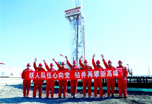 2020年,1205鉆井隊連續(xù)4年實現(xiàn)鉆井年進尺10萬米,隊員們歡呼慶祝。(大慶油田供圖)