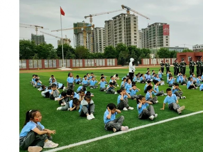 “接下來我們進行隊列訓(xùn)練,看看同學(xué)們誰最像解放軍?”“蘿卜蹲的游戲想不想玩?”同學(xué)們熱情高漲,在教官的組織下圍成一個圓圈。