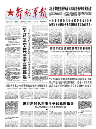 解放軍報(bào)評論員:推動形成全民國防教育工作新格局推動形成全民國防教育工作新格局 ——認(rèn)真學(xué)習(xí)貫徹《關(guān)于加強(qiáng)和改進(jìn)新時(shí)代全民國防教育工作的意見》 ■解放軍報(bào)評論員 “國無防不立,善教得民心!眹业母粡(qiáng)、民族的復(fù)興,離不開全民國防教育的普及和全民國防意識的增強(qiáng)。 近日,中共中央、國務(wù)院、中央軍委印發(fā)了《關(guān)于加強(qiáng)和改進(jìn)新時(shí)代全民國防教育工作的意見》,這是指導(dǎo)當(dāng)前和今后一個(gè)時(shí)期全民國防教育工作的綱領(lǐng)性文件。認(rèn)真學(xué)習(xí)貫徹《意見》,對于推動新時(shí)代全民國防教育改革發(fā)展和普及深入,增強(qiáng)全民愛黨愛國愛社會主義的深厚情感、居安思危的憂患意識、崇軍尚武的思想觀念、強(qiáng)國強(qiáng)軍的責(zé)任擔(dān)當(dāng),具有重要而深遠(yuǎn)的意義。 加強(qiáng)全民國防教育,增強(qiáng)全民國防觀念,是黨和國家始終高度重視的一個(gè)重要戰(zhàn)略問題。全民國防教育是建設(shè)鞏固國防和強(qiáng)大人民軍隊(duì)的基礎(chǔ)性工程,是黨的宣傳思想工作的重要組成部分,是弘揚(yáng)愛國主義精神、增強(qiáng)全民國防意識的有效途徑。黨的十八大以來,習(xí)主席高度重視全民國防教育工作,作出一系列重要決策部署,推動新時(shí)代全民國防教育領(lǐng)導(dǎo)體制機(jī)制改革,設(shè)立烈士紀(jì)念日、國家公祭日,建立黨和國家功勛榮譽(yù)表彰制度,籌劃舉行一系列重大慶祝紀(jì)念活動,極大提振了黨心軍心民心,全民國防意識不斷增強(qiáng),關(guān)心支持國防和軍隊(duì)建設(shè)的社會氛圍更加濃厚。 “事必有法,然后可成!薄兑庖姟返闹贫▽(shí)施,突出新時(shí)代的旗幟引領(lǐng)、突出新體制的現(xiàn)實(shí)需要、突出新任務(wù)的戰(zhàn)略牽引,注重把握國家安全形勢的發(fā)展變化、把握宣傳思想工作的時(shí)代要求,對新時(shí)代全民國防教育工作進(jìn)行科學(xué)謀劃和統(tǒng)籌設(shè)計(jì)。貫徹落實(shí)好《意見》,有利于理順體制機(jī)制、完善政策制度、改進(jìn)方法手段、夯實(shí)建設(shè)基礎(chǔ);有利于運(yùn)用新時(shí)代創(chuàng)新成果,統(tǒng)籌社會優(yōu)質(zhì)資源,推動全民國防教育高質(zhì)量發(fā)展;有利于進(jìn)一步調(diào)動社會各界積極性,凝聚軍地合力,推動形成全民國防教育工作新格局。 當(dāng)前,世界進(jìn)入新的動蕩變革期,我國國家安全形勢不穩(wěn)定性不確定性增大,大國博弈加劇,反分裂斗爭形勢嚴(yán)峻復(fù)雜,周邊領(lǐng)土主權(quán)和海洋權(quán)益爭端更加凸顯,家門口生亂生戰(zhàn)的可能性增大,維護(hù)國家政治安全和社會穩(wěn)定任務(wù)艱巨繁重。在推進(jìn)祖國和平統(tǒng)一,維護(hù)國家主權(quán)、安全、發(fā)展利益,實(shí)現(xiàn)建軍一百年奮斗目標(biāo)中,全民國防教育工作使命光榮、任務(wù)艱巨、意義重大。我們一定要從戰(zhàn)略和全局的高度,把學(xué)習(xí)貫徹《意見》作為一件大事抓緊抓好。 全民國防教育,主體在“全民”。加強(qiáng)和改進(jìn)新時(shí)代全民國防教育工作,是一項(xiàng)全民參與、長期堅(jiān)持、講求實(shí)效的系統(tǒng)工程,是全黨全軍全社會的共同責(zé)任。只有堅(jiān)持軍地協(xié)同、統(tǒng)籌推進(jìn),各司其職、各盡其責(zé),積極配合、同向發(fā)力,才能形成黨委領(lǐng)導(dǎo)、軍地密切配合、社會各界支持、全民共同參與的工作局面,才能使這項(xiàng)工作扎實(shí)有效。軍隊(duì)人員和民兵、預(yù)備役人員是國防建設(shè)的主體力量,必須在全民國防教育工作中發(fā)揮表率作用。全軍在學(xué)習(xí)貫徹《意見》中,要在搞好自身國防教育的同時(shí),充分發(fā)揮優(yōu)勢,為加強(qiáng)和改進(jìn)新時(shí)代全民國防教育工作貢獻(xiàn)力量。要按照規(guī)定組織開展系列軍營開放活動,打造有特色有聲勢有影響的活動品牌;要支持配合地方開展全民國防教育,積極提供必要的教育訓(xùn)練場地、設(shè)施、器材以及其他便利條件;軍隊(duì)院校和訓(xùn)練機(jī)構(gòu)要協(xié)助各級國防教育工作機(jī)構(gòu)開展好國防教育專題培訓(xùn),助力提升全民國防素養(yǎng);省軍區(qū)系統(tǒng)要協(xié)調(diào)駐軍部隊(duì)配合地方開展全民國防教育主題實(shí)踐、國防競技、軍事體驗(yàn)等教育活動,推進(jìn)條件成熟的軍事場館有序向社會開放,努力營造濃厚的國防教育氛圍,使關(guān)心國防、熱愛國防、建設(shè)國防、保衛(wèi)國防成為全社會的思想共識和自覺行動,凝聚起實(shí)現(xiàn)中國夢強(qiáng)軍夢的磅礴力量。(中國軍網(wǎng)-解放軍報(bào))