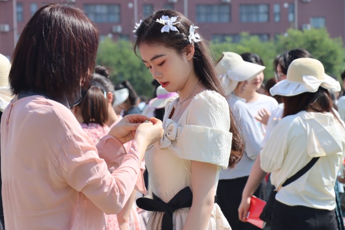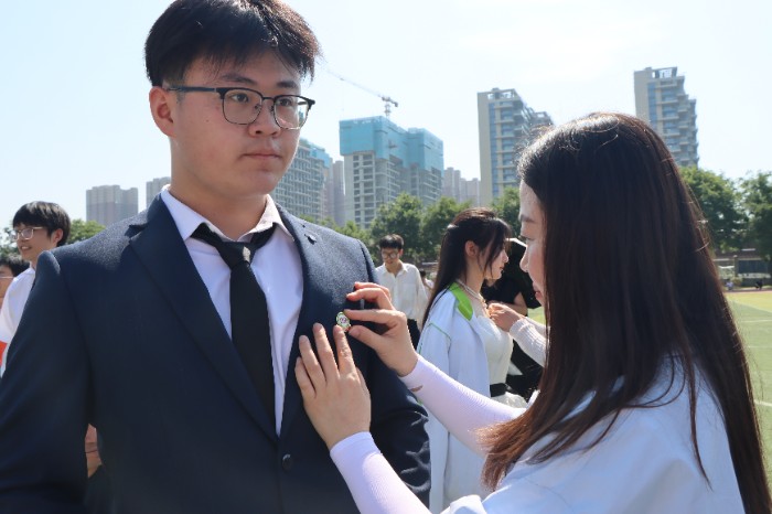 家長(zhǎng)們?yōu)楹⒆优宕骱眉o(jì)念章,這枚小小的紀(jì)念章不僅是對(duì)他們成長(zhǎng)的見(jiàn)證,更是對(duì)他們未來(lái)的祝福和期許。同學(xué)們向父母鞠躬,深情擁抱,感謝父母多年來(lái)的辛勤付出與無(wú)私奉獻(xiàn)。 同學(xué)們從班主任的手中接過(guò)《中華人民共和國(guó)憲法》的同時(shí)也接過(guò)了沉甸甸的責(zé)任與擔(dān)當(dāng)。十八歲意味著要履行公民義務(wù),牢記社會(huì)責(zé)任,以公民之名義擔(dān)負(fù)起服務(wù)人民、服務(wù)社會(huì)、服務(wù)國(guó)家的重任。同學(xué)們深情地為自己敬愛(ài)的老師獻(xiàn)上精心準(zhǔn)備的鮮花,感謝老師三年的陪伴成長(zhǎng),朝夕相伴,在生命中重要的時(shí)刻指引方向。