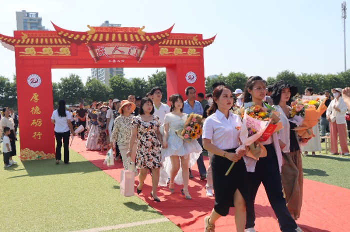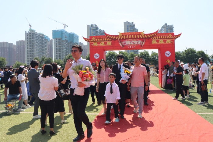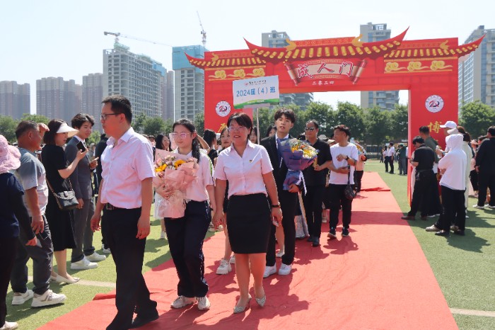 第七項(xiàng),穿過(guò)“成人門(mén)”,投遞“心愿卡”。伴隨著鏗鏘激昂的音樂(lè),在校領(lǐng)導(dǎo)和班主任的帶領(lǐng)下,同學(xué)們列隊(duì)前行,與家長(zhǎng)攜手穿過(guò)成人門(mén),將心愿卡投遞到心愿箱?邕^(guò)成人門(mén),與成熟穩(wěn)重相約,開(kāi)始青春的征程,以責(zé)任履行使命,以青春之我開(kāi)辟嶄新的未來(lái)。 為促進(jìn)本次活動(dòng)的順利進(jìn)行,學(xué)校不僅設(shè)置臨時(shí)醫(yī)療服務(wù)站點(diǎn)提供全程醫(yī)療服務(wù)保障,還為前來(lái)的小朋友準(zhǔn)備了豐富的糖果,現(xiàn)場(chǎng)歡聲笑語(yǔ),其樂(lè)融融。 鷹擊天風(fēng)壯,鵬飛海浪春。2024屆杜中學(xué)子將以“鯤鵬久有凌云志,天道酬勤佳音來(lái)”的信心和決心,劈波斬浪,不負(fù)可為時(shí)代,爭(zhēng)做有為青年;只待天風(fēng)起,海浪翻,以雄鷹之姿搏擊長(zhǎng)空,以鯤鵬之志踏浪而起,以鏗鏘戰(zhàn)歌凱旋六月!