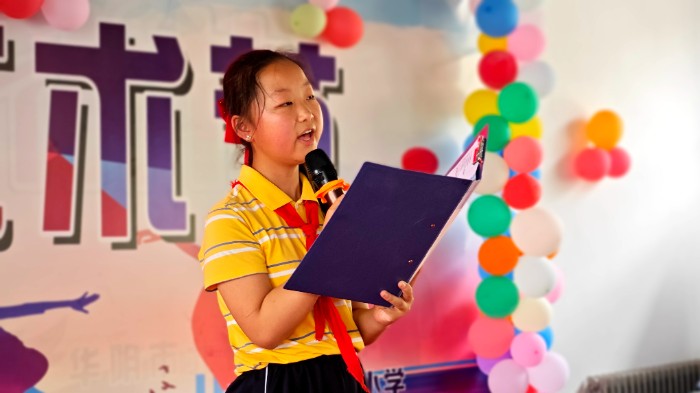 伴隨著雄壯激昂的國歌聲,少先隊員高舉隊旗,接收了新隊員,該校校長做了熱情洋溢的致辭。隨后,精彩紛呈的節(jié)目展演開始。紅色故事宣講《中華少年》、 啦啦操《讓我們蕩起雙槳》、腰鼓《盛世歡騰》、舞蹈《寄明月》、情景劇《留守兒童說》等多種形式的節(jié)目,內容豐富多彩,各具特色。一個個精彩的節(jié)目輪番上演,這些具有紅色文化元素的精彩節(jié)目將活動帶向了一個又一個高潮,贏得了現場觀眾的熱烈掌聲。