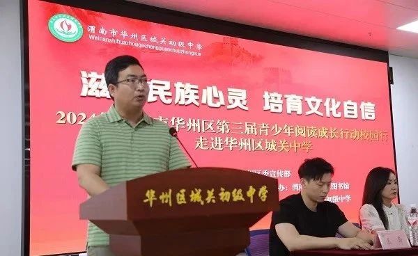 渭南市華州區(qū)圖書館第三屆“青少年閱讀成長(zhǎng)行動(dòng)校園行”走進(jìn)華州區(qū)城關(guān)中學(xué)文化藝術(shù)網(wǎng)-文化藝術(shù)報(bào)訊(全媒體記者 高盼成)為推進(jìn)全民閱讀活動(dòng)深入開展,進(jìn)一步滿足廣大青少年對(duì)圖書閱讀的精神文化需求,6月4日下午,由中共渭南市華州區(qū)委宣傳部主辦,區(qū)文旅局、區(qū)教體局承辦,區(qū)圖書館、區(qū)城關(guān)中學(xué)協(xié)辦的“滋養(yǎng)民族心靈 培育文化自信”——渭南市華州區(qū)第三屆青少年閱讀成長(zhǎng)行動(dòng)校園行活動(dòng)走進(jìn)華州區(qū)城關(guān)中學(xué)。