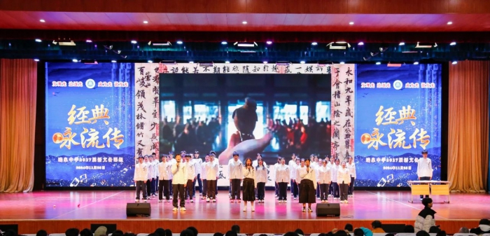 舞臺(tái)上,同學(xué)們將詩(shī)詞與音樂、舞蹈、書法等藝術(shù)形式相結(jié)合,或淺吟低唱,或引吭高歌,或以歌伴舞,或揮毫潑墨,吟誦與詠唱交相輝映,傳統(tǒng)與現(xiàn)代完美融合。在各班主任和語(yǔ)文老師的精心組織下,參賽班級(jí)充分準(zhǔn)備,反復(fù)練習(xí),所有演員熱情洋溢,各展風(fēng)采,為觀眾呈現(xiàn)了一場(chǎng)視聽盛宴。