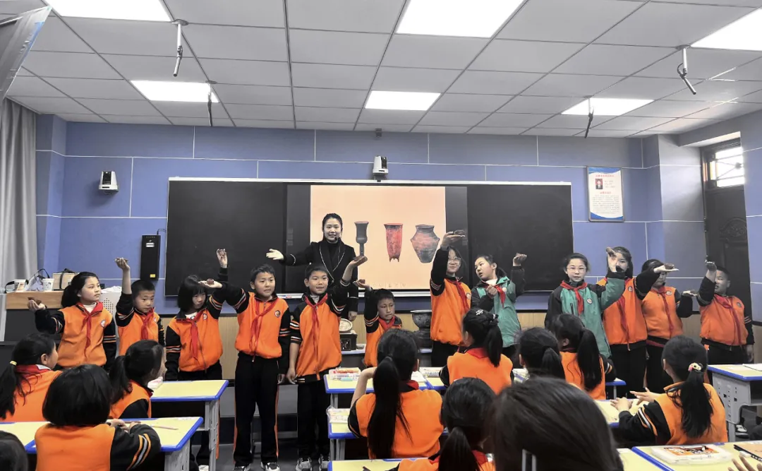 “據(jù)考證,它們?cè)醋粤咔昵,承載著厚重的歷史記憶……”講解員小心翼翼地將陶器碎片傳遞到學(xué)生手中。大家懷著敬畏與好奇輕輕觸摸,指尖摩挲陶器粗糙斑駁的表面,仿佛跨越時(shí)空觸碰古老歲月,深切感受到歷史的厚重與時(shí)光沉淀的魅力。