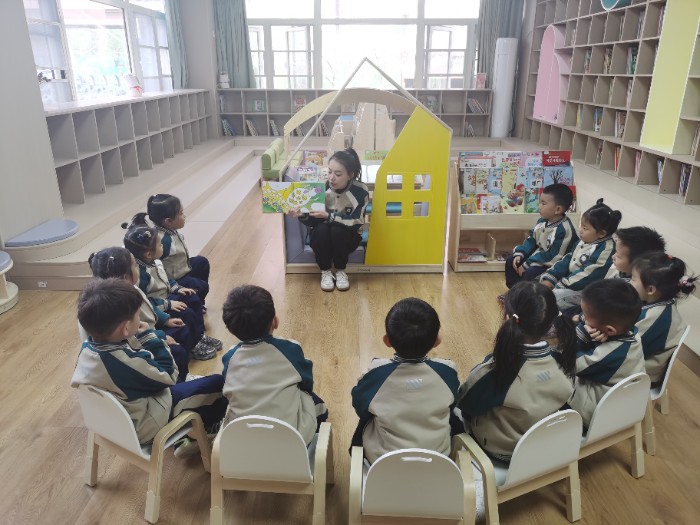 第一幼兒園教師在帶領(lǐng)幼兒閱讀繪本