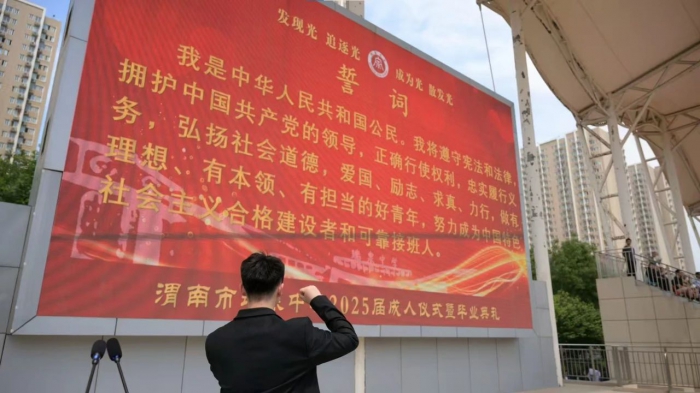 渭南市瑞泉中學(xué)2025屆成人儀式暨畢業(yè)典禮圓滿舉行文化藝術(shù)網(wǎng)-文化藝術(shù)報(bào)訊(全媒體記者 高盼成 通訊員 楊妙榮)5月20日,渭南市瑞泉中學(xué)舉行2025屆成人儀式暨畢業(yè)典禮。學(xué)校行政會(huì)成員、高三全體師生及家長(zhǎng)齊聚操場(chǎng),共同見(jiàn)證這一莊嚴(yán)簡(jiǎn)樸而又溫情滿溢的重要時(shí)刻。