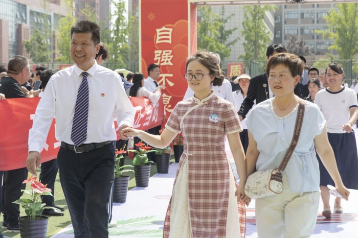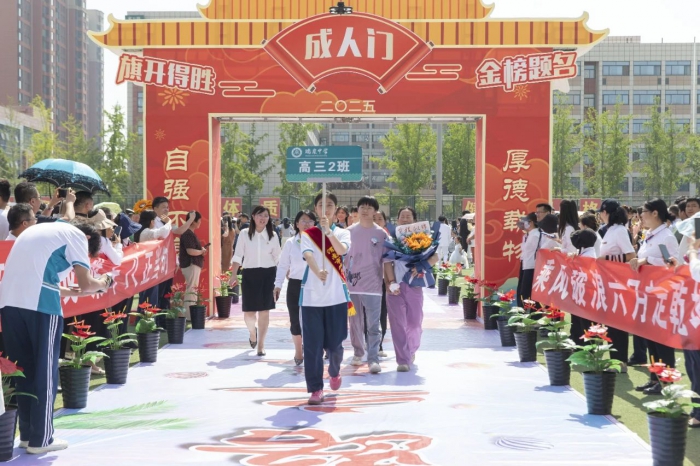儀式在全體高三學(xué)生走過(guò)“成人門”并留存心愿卡中達(dá)到高潮。父母和老師牽著孩子的手鄭重地走過(guò)“成人門”,這是青春的界碑,是成年的起點(diǎn)。門楣之上,鐫刻著父母的叮嚀,師長(zhǎng)的囑托;門檻之下,鋪展著星辰大海,萬(wàn)里鵬程。
